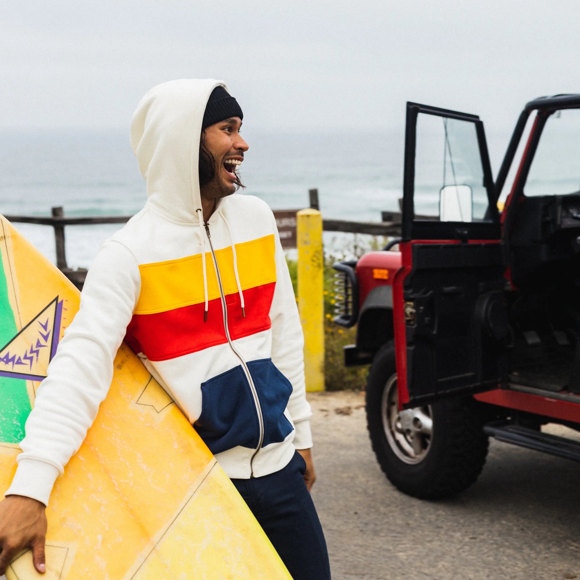 Stripe White Sand Men's PCH Full Zip Hoodie - Stripe, White Sand