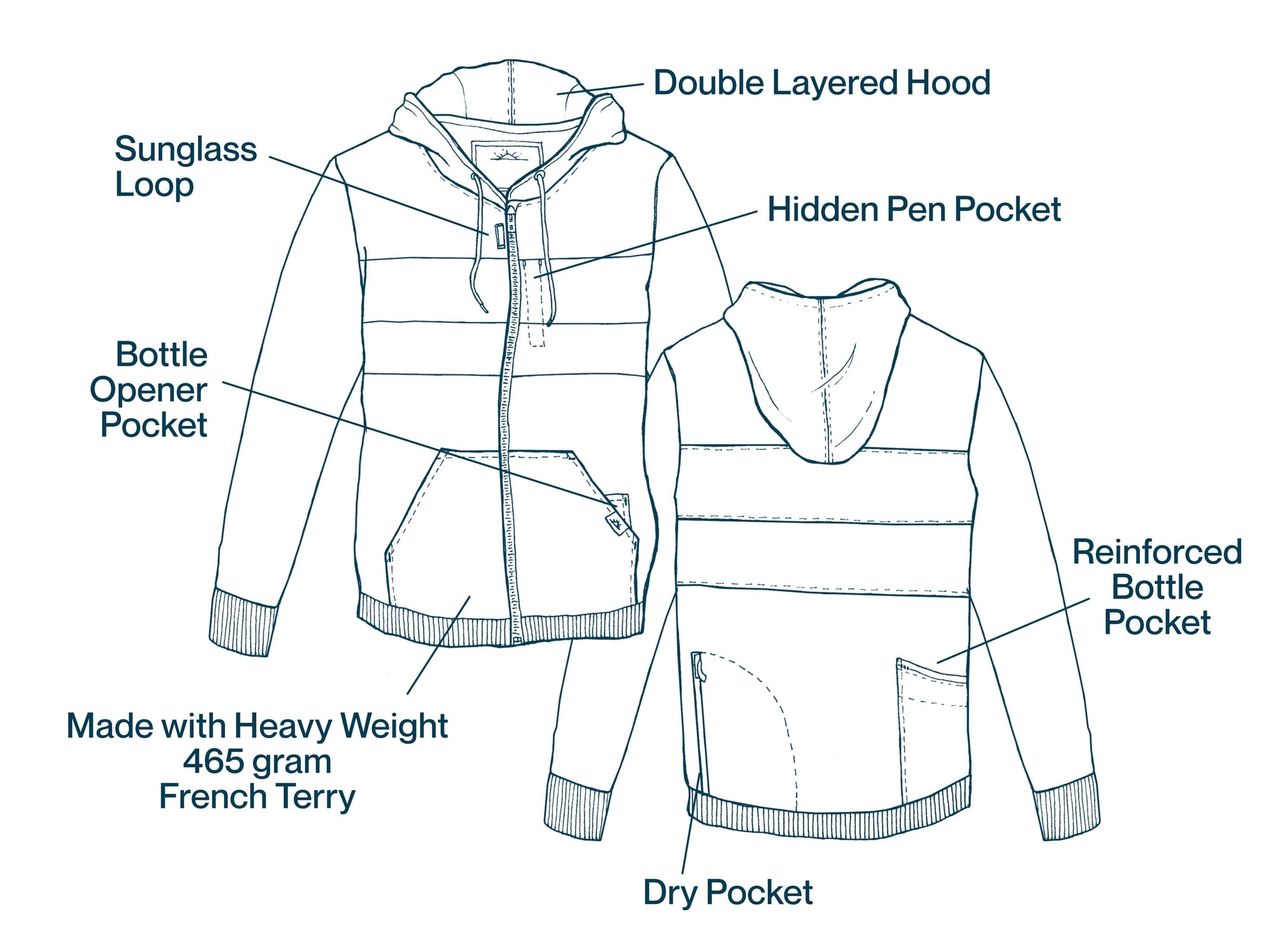 Stripe Farallon Navy Men's PCH Full Zip Hoodie - Stripe, Farallon Navy