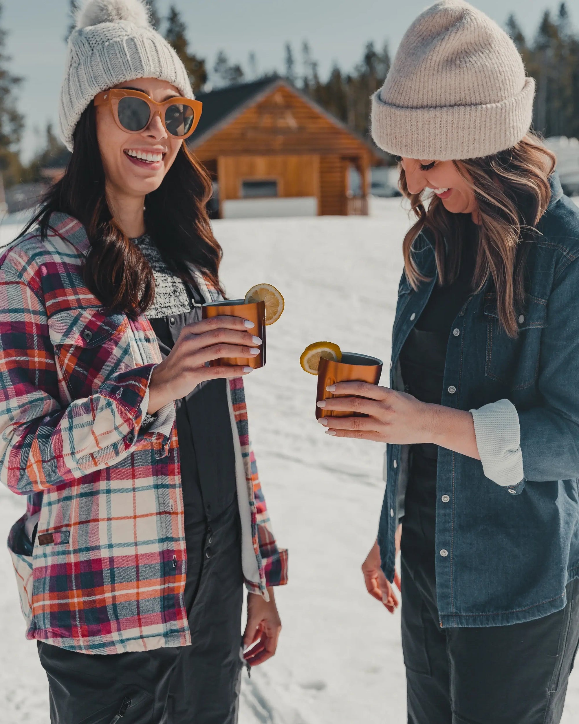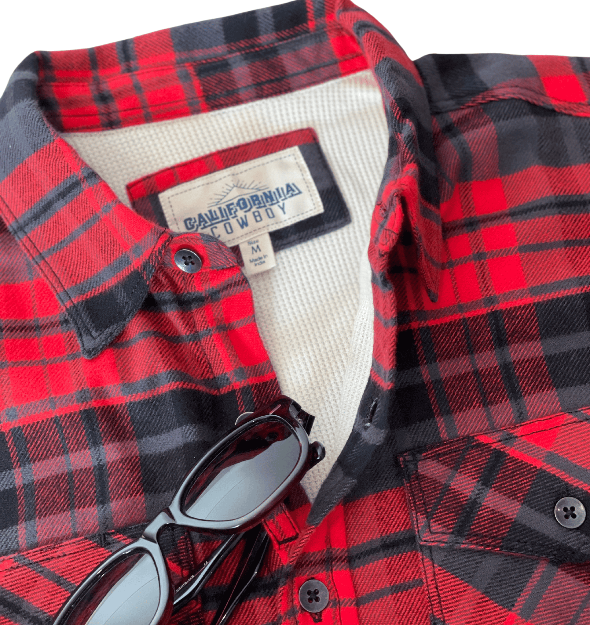 Our signature après-ski flannel shirt - featuring luxury Portuguese cotton, cozy thermal lining, plus special pockets for your phone, bottle opener and frosty beverage.